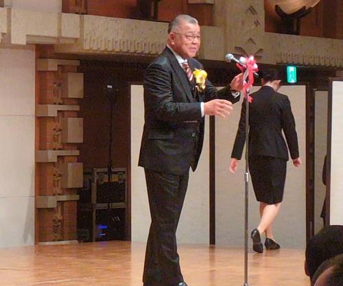 阪神タイガースOB会長の掛布雅之氏(70)の野球殿堂入りを祝う会が12日、大阪市北区の帝国ホテル大阪で行われた。大拓興産、明輝コーポレーションが協賛し、掛布氏と名勝負を繰り広げた元巨人江川卓氏(70=野球評論家)や中西清起氏(63=日刊スポーツ評論家)、阪神粟井球団社長ら約200人が出席した。
