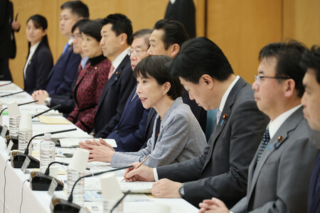 男女共同参画会議で発言する高市早苗首相(右から4人目)=12日午後、首相官邸 政府の男女共同参画会議は12日、高市早苗首相も出席して首相官邸で会合を開いた。第6次男女共同参画基本計画に関する答申案が示されたが、芳野友子連合会長が「高市色」の濃い旧姓使用の法制化検討などに反対を表明したため、まとまらなかった。