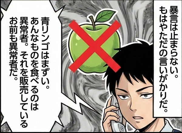 「青リンゴを食べるのは異常者」と謎理論を主張するクレーマーに「誹謗中傷は警察への相談も視野に」と反撃してみた結果
