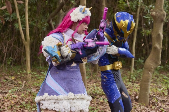 それぞれがブライダンと戦うなかで陸王(鈴木秀脩)は、憎しみにとらわれたブーケ(まるぴ)と再び向かい合う。アイドルとファンでありながら敵同士な2人は、戦わなければいけない哀しい運命…。それでも陸王はブーケに「君に幸せでいてほしい」と語りかける。