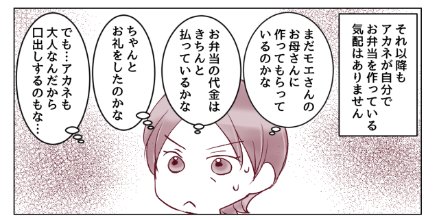 どんな心境の変化があったかは知りませんが、さすがによそのお母さんにお弁当を作らせている自分が恥ずかしくなったのでしょうか。