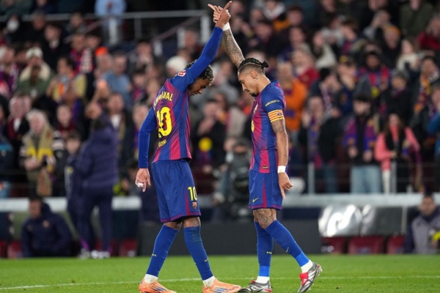 さらに86分、ジュール・クンデがボックス内に抜け出してラミン・ヤマルからのパスをワンタッチでクロス。これをアレハンドロ・カテナがクリアしたが、そのボールはゴール前に詰めていたハフィーニャのもとに。これを落ち着いてゴールに押し込み、バルセロナが加点した。