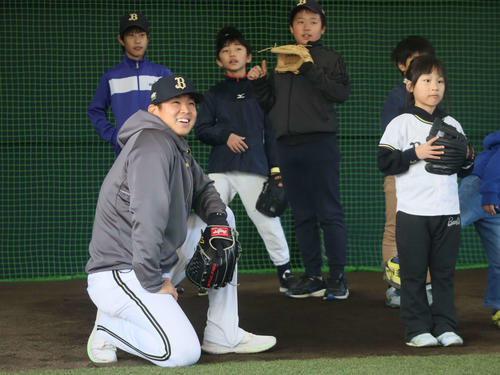 本業の投手では「完封もちろんしたいですし、1年間投げ続けることが一番の目標」。今季4試合登板から巻き返しへ。子どもたちにパワーをもらい、活躍を誓った。【村松万里子】
