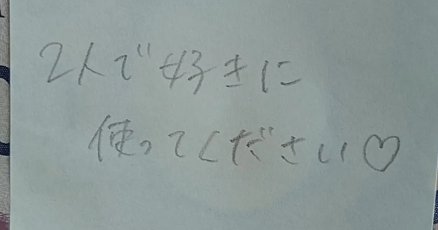 ダイニングテーブルの上にはクリップ式のメモスタンドが置かれているのですが……そこにはなんと、長女が用意した1000円札が2枚挟まっているではありませんか! 仲良しな友だちとのお泊まり会の夜には、お菓子や飲み物が欲しくなるもの。「2人で好きに使ってください(ハートマーク)」という姉からの書き置きメモも一緒に挟んであり、妹思いの姉の行動にほっこりしますね。