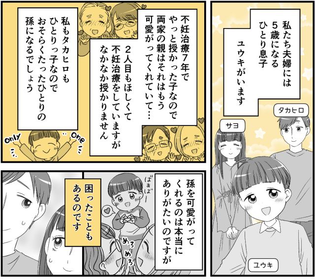 両家の親が孫を可愛がってくれるのは私もタカヒロも本当にありがたいのですが……。困ったこともあるのです。