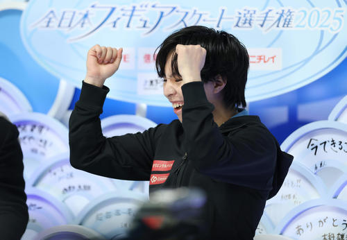 24年世界選手権8位の経験があるが、昨秋から左太もも痛の影響で不振が続いた。支えとなったのは、鍵山と佐藤からの「一緒に五輪に行こう」という言葉。苦境に屈せず競技に打ち込み、11月のGPスケートカナダ3位と復調してきた。この日も冒頭から3本連続で4回転ジャンプを成功。中盤はミスもあったが、演技を通し「2人がいなかったら表彰台に乗れなかった」と感謝した。大きく近づいた夢舞台を前に「追い込んではい上がりたい。表彰台はうれしいけど、自分も上手になって追いつきたい」と新たな誓いを立てた。