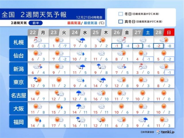 2025年も残り10日ほどになり、仕事納めや終業式、大掃除、帰省など忙しい時期に入りました。気になる天気や気温を解説していきます。
