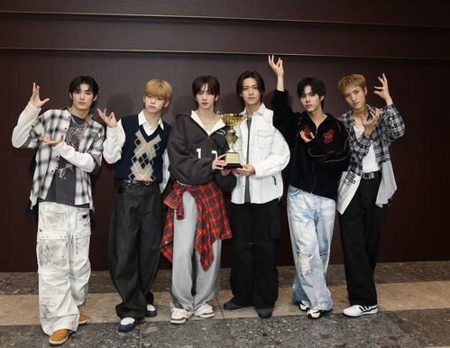 10月30日リリースのミニアルバムのタイトル曲「TROPHY」について、ファン・ソンビン(21)は「ハウスサウンドでベースラインが特徴。みんな一緒に踊れる曲だと思います」と説明。始まったばかりの日本での本格的な活動に「もっと大きな舞台で成長したい」と言えば、リーダーのチョ・ソンイル(21)も「東京ドームでステージがしたいです」。パク・ソクジュン(21)は「まだ行ったことがない地方にも行きたい」と飛躍を誓った。