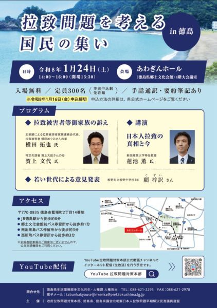 ¡¡ËÌÄ«Á¯¤Ë¤è¤ëÆüËÜ¿ÍÙÇÃ×ÌäÂê¤Ø¤Îǧ¼±¤ò¹¤¯¿¼¤á¤Æ¤â¤é¤¦°ì½õ¤Ë¤È¡¢2026ǯ1·î24Æü(ÅÚ)14»þ¡Á16»þ¤ËÆÁÅç»Ô¤Î¤¢¤ï¤®¤ó¥Û¡¼¥ë(ÆÁÅ縩¶¿ÅÚʸ²½²ñ´Û)¤Ç¡¢¡ÖÙÇÃ×ÌäÂê¤ò¹Í¤¨¤ë¹ṉ̃¤Î½¸¤¤inÆÁÅç¡×¤¬³«ºÅ¤µ¤ì¤ë¡£À¯ÉÜÙÇÃ×ÌäÂêÂкöËÜÉô¡¢ÆÁÅ縩¡¢ÆÁÅ縩µÄ²ñËÌÄ«Á¯ÆüËÜ¿ÍÙÇÃ×ÌäÂêÁá´ü²ò·èÂ¥¿ÊµÄ°÷Ï¢ÌÁ¤Î¼çºÅ¡£Æþ¾ì̵ÎÁ¡£»²²Ã¼Ô¿½¤·¹þ¤ß¤ò¼õ¤±ÉÕ¤±¤Æ¤¤¤ë¡£