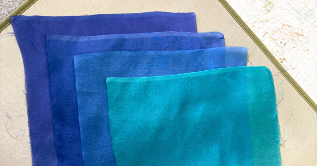 今回は「これがこうなる選手権」というSNS上で流行しているハッシュタグを添え、深い青色から水色までグラデーションになった4枚の布を披露しています。これが蒼菊さんの手にかかると……?