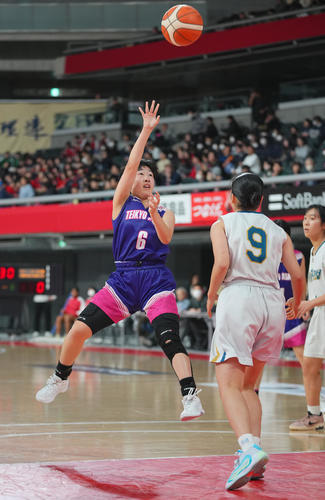 女子の帝京安積(福島)は星城に敗れて2回戦敗退も、佐藤唯月(3年)が両軍通じて最多の22得点。「打てるタイミングで打ったのが入ったので、うれしかったです」と振り返った。星城の平均身長が約170センチに対し、帝京安積は約160センチ。それでも全国で戦えることを証明した。「小さい子が多いですが、誰にも負けないような脚力を武器に歴史を変えてくれることを願っています」と後輩にバトンを託した。