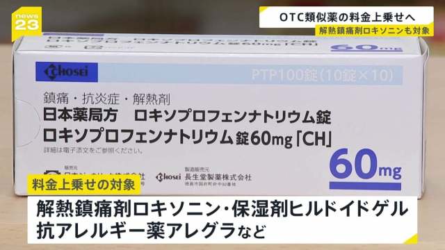 関係者によりますと、対象となる医薬品は解熱鎮痛剤のロキソニンのほか、保湿剤のヒルドイドゲル、抗アレルギー薬のアレグラなどで、薬剤費の25%が料金に上乗せされます。