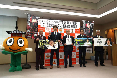 オリックス曽谷龍平投手(25)が26日、地元である奈良・斑鳩(いかるが)町役場を表敬訪問した。中西和夫町長から「斑鳩といえば(世界遺産の)法隆寺だったのが、オリックスの曽谷投手と通じるようになった」と激励され、「少しでも地元の力になれれば」と決意を新たにした。