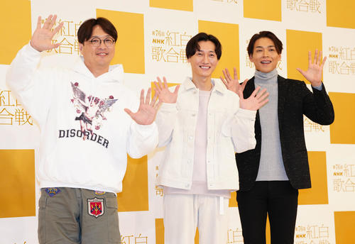 紅白リハーサルがスタートした。8年連続8度目の出場となる歌謡コーラスグループ純烈が意気込みを語った。「いい湯だな(ビバノン・ロック)」を披露する。3人体制となって初の紅白。
