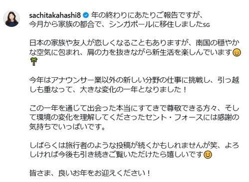 ¸µKTS¼¯»ùÅç¥Æ¥ì¥Ó¡¢TBS NEWS¥¥ã¥¹¥¿¡¼¤Î¹â¶¶¹¬¡Ê31¡Ë¤¬31Æü¤Þ¤Ç¤Ë¥¤¥ó¥¹¥¿¥°¥é¥à¤ò¹¹¿·¡£¡Öǯ¤Î½ª¤ï¤ê¤Ë¤¢¤¿¤ê¤´Êó¹ð¤Ç¤¹¤¬¡¢º£·î¤«¤é²È²¤ÎÅÔ¹ç¤Ç¡¢¥·¥ó¥¬¥Ý¡¼¥ë¤Ë°Ü½»¤·¤Þ¤·¤¿¡×¤ÈÊó¹ð¤·¤¿¡£