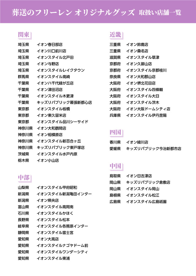 関東・北陸信越・東海・近畿・中四国の「イオン」「イオンスタイル」おもちゃ売り場 約50 店舗にてご購入いただけます。