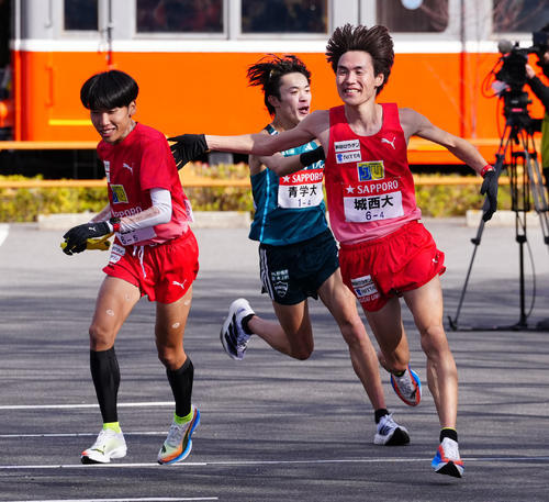 5区で青学大の黒田朝日(4年)に続く区間2位の1時間9分28秒のタイムで快走した5位城西大の斎藤将也(4年)も「黒田くんと一緒にスタートしたんですけど、ついていったら間違いなく死んでいるんで(笑い)。あれは別格」と、自分より2分以上も速かった黒田の異次元の走りに脱帽した。
