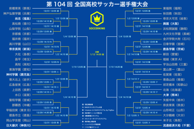 【トーナメント表】第104回高校サッカー選手権 準々決勝のカードが決定!