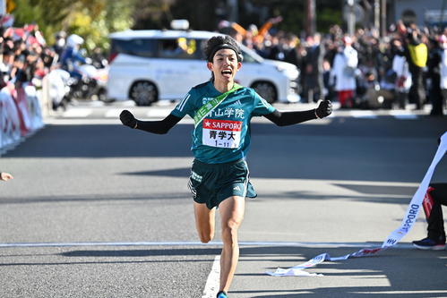 同一チームでは史上初の2度目3連覇が懸かる青山学院大(青学大)は、山登り5区にエース黒田朝日主将(4年=玉野光南)が当日エントリー変更で投入され、爆走した。たすきを3分25秒差で受けた後、平地のように推進。SNSでは「山の…?」と早くも命名が話題になっている。