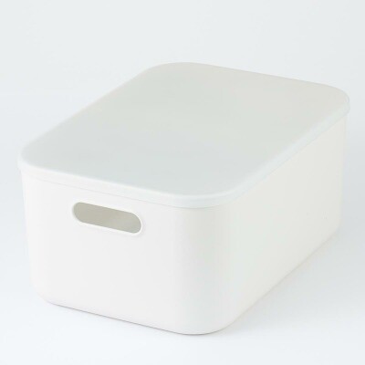 無印良品の「やわらかポリエチレンケース」は、サイズが豊富なので収納するものや保管する棚に合わせて選べるのが特長です。公式ストアでは、小サイズが590円(税込)で販売されています。