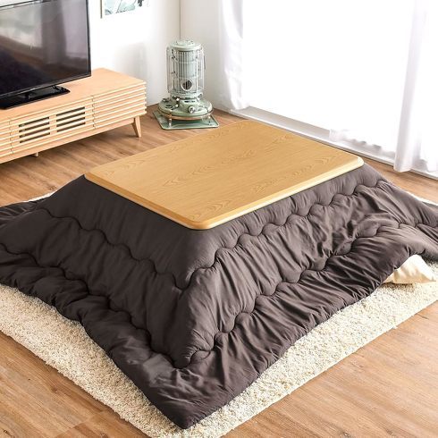 本体サイズは約120(幅)×約35.5(高さ)×約80(奥行き)cmという家族で使えるこたつセット。2人や3人でも問題なく使えるサイズ感です。冬はこたつとして使いながら、それ以外の季節は掛け布団を外して、リビングテーブルとして使うなど、オールシーズン活躍します。