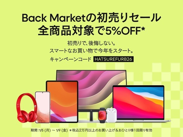 「Back Market」は2026年1月5日から1月9日までの5日間という限定期間で、新年の幕開けを飾る大規模な初売りセールを開催する。