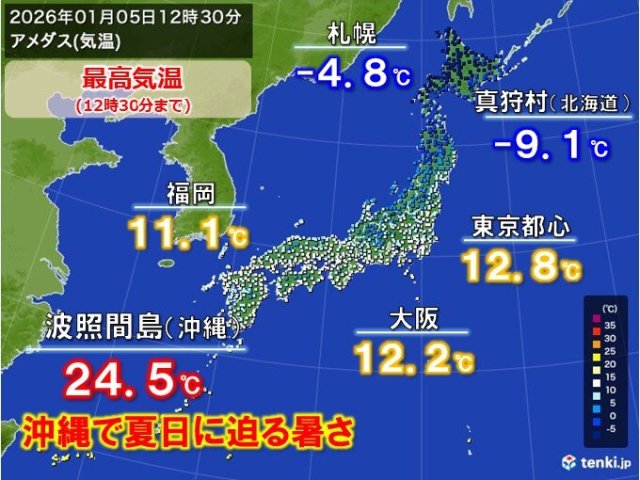 今日5日 沖縄は夏日に迫る暑さ 北日本は寒の入りらしい寒さ