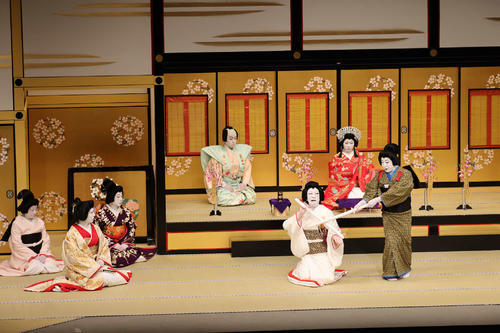 お家転覆をたくらむお局を阻止しようとする女性たちの奮闘を描いた演目。8代目は果敢に主人の敵を討つ召し使いお初を、7代目は源頼朝を演じた。7代目、8代目の共演は昨年6月歌舞伎座以来7カ月ぶり。