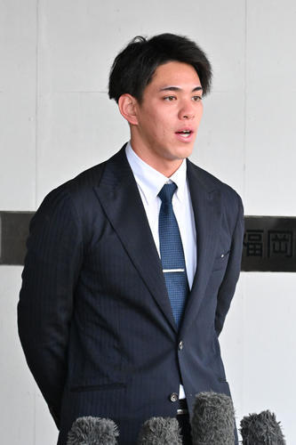 若鷹寮に入寮し囲み取材に応じるソフトバンクの高橋(撮影・林敢治)ソフトバンク・ドラフト5位のJR東日本・高橋隆慶内野手(24)が5日、福岡・筑後市にある若鷹寮に入寮し、中央大の1学年先輩、阪神森下を目標に「チームの顔になりたい」と胸を高鳴らせた。