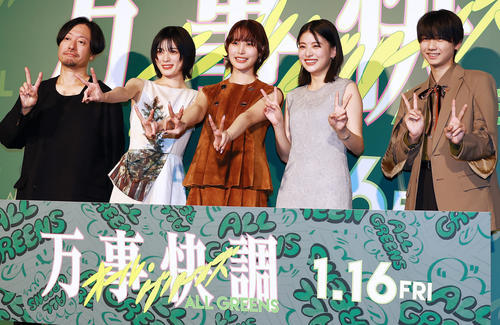 「万事快調〈オール・グリーンズ〉」は、第28回松本清張賞を満場一致で受賞した波木銅氏の同名小説の映画化作品。南はラッパーを夢見ながらも、学校にも家にも居場所を見いだせず鬱屈(うっくつ)とした日々を送る朴秀美、出口は陸上部のエースでスクールカースト上位に属しながらも家庭では問題を抱える映画好きの矢口美流紅を、それぞれ演じる。自分たちの夢をかなえるため、未来が見えない町とおさらばするために一獲千金を狙うしかないと、吉田美月喜(22)演じる岩隈真子と、同好会「オール・グリーンズ」を結成。危険な種子を栽培する不適切な禁断の課外活動を行う物語。羽村仁成(18)が、岩隈の後輩で漫画オタクの藤木漢を演じた。