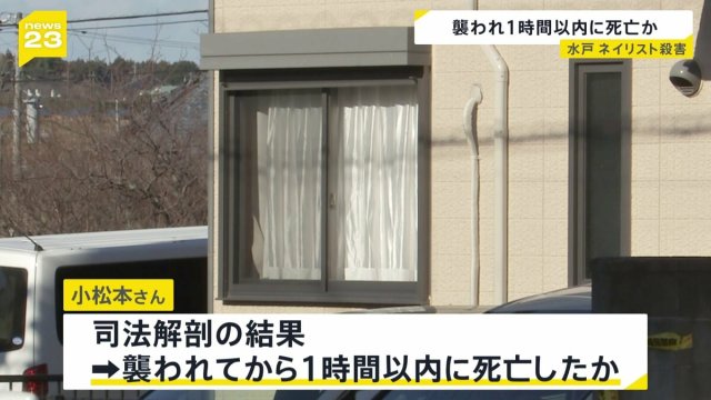 水戸市のアパートでネイリストの女性が殺害された事件で、女性が襲われてから1時間以内に死亡したとみられることがわかりました。