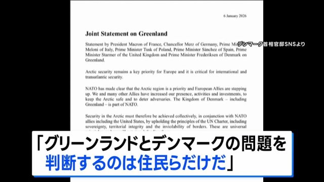 アメリカのトランプ大統領がデンマークの自治領であるグリーンランドの領有に意欲を示したことを受け、デンマークやイギリス、フランスなどヨーロッパの7か国が共同声明を発表しました。
