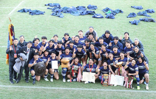 桐蔭学園(神奈川第1)が京都成章(京都)を逆転で下し、史上6校目の3連覇を達成した。初Vを狙う京都成章に先制トライを許したものの、同18分にFB曽我大和(2年)、後半4分にNO8足立佳樹(3年)がトライして逆転。その後も3トライとドロップゴールで得点を重ね、36−15でノーサイドを迎えた。悔しい敗戦も経験し、チャレンジャーとして臨んだ桐蔭学園が、シーズン最後に頂点に立った。