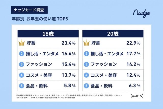 新成人世代のお年玉の使い道は「貯蓄」が1位。続いて「推し活・エンタメ」が2位にランクイン。