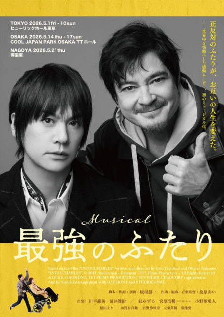 ミュージカル『最強のふたり』は、東京・ヒューリックホール東京にて5月1日〜5月10日、大阪・COOL JAPAN PARK OSAKA TTホールにて5月14日〜17日、名古屋・御園座にて5月21日に上演される。