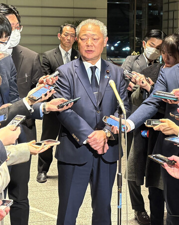 高市早苗首相、菅義偉元首相との会食後、記者団の取材に応じる日本維新の会の馬場伸幸前代表(中央)=7日午後、首相官邸 高市早苗首相は7日、自民党の菅義偉元首相、日本維新の会の馬場伸幸前代表と首相官邸で夕食を共にした。首相の依頼を受けた菅氏の仲介により実現したといい、国のインテリジェンス(情報収集・分析)体制の強化や憲法改正などを巡って約1時間半にわたり意見を交わした。