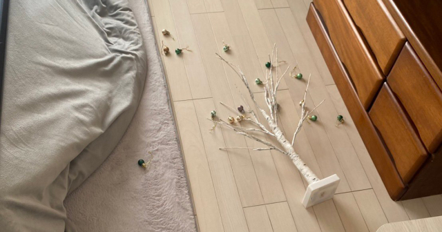 娘である概念のチワワさんに送られてきた写真には、落ちて飛び散った部屋のインテリアが写っています。自宅で飼っている愛猫「ねこた」くんのいたずらをうたがったお母さんは、「ねこた!?!?」とメッセージを送信。しかし、犯人は概念のチワワさんだったようで、「わたしです……」と白状しました。