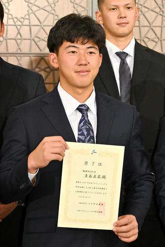 プロ野球界に名を刻み、殿堂入りする! 阪神ドラフト1位の立石正広内野手(22=創価大)が9日、都内のホテルで行われたNPB新人選手研修会に参加。野球殿堂博物館を見学した際に長嶋茂雄さんらレジェンドの展示品に感銘を受け、将来殿堂入りする選手になる大目標が定まった。講師を務めた通算104勝の球団OB、能見篤史氏(46)からも近い将来の中軸を期待され、決意は新たまった。