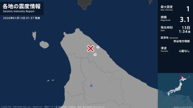 13Æü¸áÁ°1»þ34ʬ¤´¤í¡¢Ë̳¤Æ»¤ÇºÇÂç¿ÌÅÙ1¤ò´Ñ¬¤¹¤ëÃϿ̤¬¤¢¤ê¤Þ¤·¤¿¡£