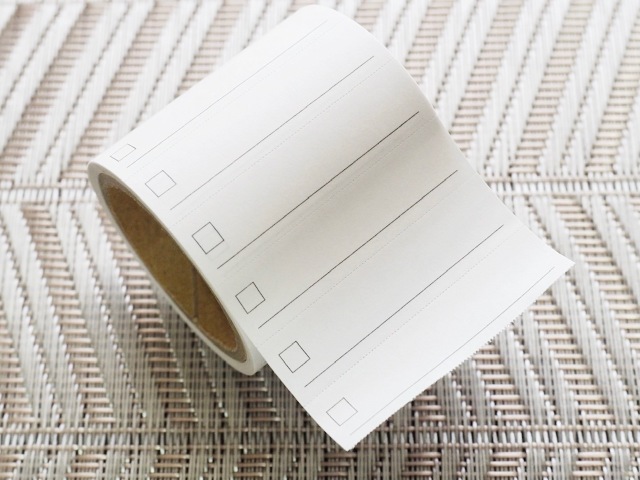 ミシン目に沿って1行ずつ切るのはもちろん、何行かまとめて切ってもOK。太いペンを使うとすぐに埋まってしまう、またたくさんの文字を書けないので、書き込む内容に合わせて切り取り方を変えてもいいですよね。
