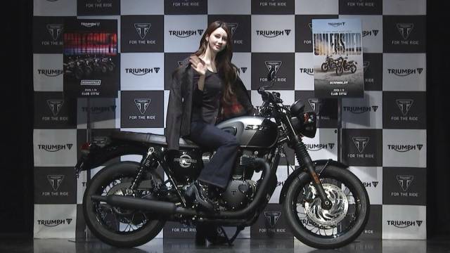 ダレノガレさんは、TRIUMPH Bonneville T120 Black と共に登場。排気量1200cc・水冷並列2気筒のSOHCエンジンを積んだモダンクラシックスタイルのバイクを前に、“120年以上の歴史があるイギリスのブランドに、アンバサダーとして選んでもらえたことがすごく嬉しい。私はまだ免許を取って1年くらいしか経ってないんですけど、乗る前と後では全然イメージが違う。本当にバイクの免許を取って良かったなって思う”と、喜びを語りました。
