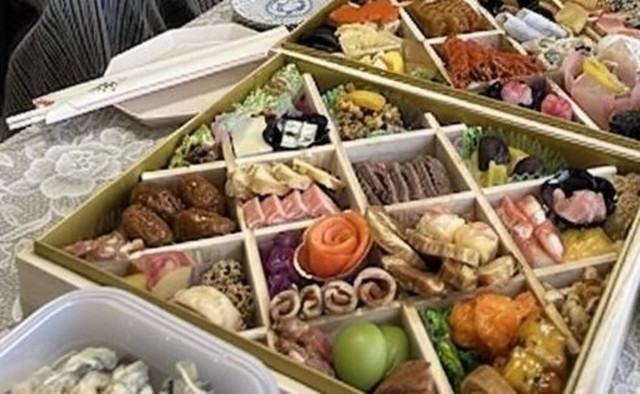 新年に義父母とおせちを食べていたというにこすさん。ちょっとした遊び心から、食卓を囲んでいる写真をAIに「豪華に」してもらえるよう頼んだら……?