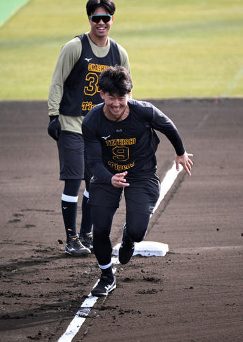 正しい走り方が身につけば、当然スピードアップにもつながる。立石の50メートル走タイムは6秒0。谷川コーチは「(もっと)速くなる」と断言した。立石自身、1年目の目標に2桁本塁打を掲げており、同時に2桁盗塁まで達成できれば、球団では48年の別当薫以来2人目で、2リーグ制後は初となる。「いかに楽に、速く、効率よく走るかは、これからも意識したい」。若き虎の背番号「9」が、打って走って旋風を起こす。【只松憲】