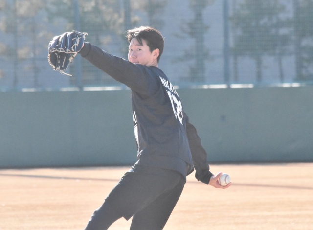 ロッテの育成ドラフト1位・中山優人(水戸啓明高)は、新人合同自主トレのキャッチボールでは、初日から相手の胸にきっちりとコントロールされたボールを投げ込んでいる。