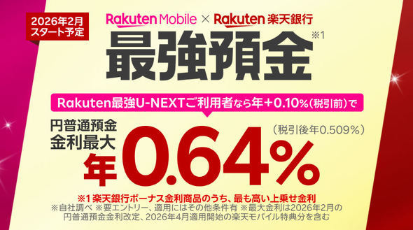 ¡¡¡ÖRakutenºÇ¶¯U-NEXT¡×¤ò·ÀÌ󤷤Ƥ¤¤ë¾ì¹ç¡¢³ÚÅ·¥â¥Ð¥¤¥ë¡ß³ÚÅ·¶ä¹Ô ¥Ü¡¼¥Ê¥¹¶âÍø¤È¤·¤ÆÇ¯0.1¡ó¤¬¾å¾è¤»¤µ¤ì¡¢2·î°Ê¹ß¤Î¶âÍø¤ÏǯºÇÂç0.64¡ó¡ÊÀǰú¸åǯ0.509¡ó¡Ë¤È¤Ê¤ë¡£³ÚÅ·¥â¥Ð¥¤¥ë¤Ï¡¢¡ÖÄ̾ï¶âÍø¤ÈÈæ¤Ù¤Æ2Çܰʾ太ÆÀ¤Ë¤Ê¤ë¡ÈºÇ¶¯Í¶â¡É¤ò¼Â¸½¤¹¤ë¡×¤È¥¢¥Ô¡¼¥ë¤¹¤ë¡£¤Ê¤ª¡¢¤³¤³¤Ç¤¤¤¦¡ÖºÇ¶¯¡×¤È¤Ï¡¢³ÚÅ·¶ä¹Ô¤¬Ä󶡤¹¤ë¥Ü¡¼¥Ê¥¹¶âÍø¤ÎÃæ¤ÇºÇ¤â¹â¤¤¶âÍø¤ò°ÕÌ£¤¹¤ë¤È¤Î¤³¤È¡£