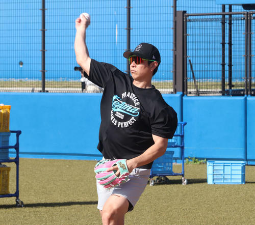 気温は25度近く夏のような暑さの中で守備、打撃練習などをみっちりこなした。前夜には、日本ハム時代に同僚だった巨人郡、西武石井、日本ハム野村、細川の自主トレメンバーで「ごほうびミーティング」を開催。それぞれが数字の目標を掲げる毎年恒例の「儀式」が行われた。