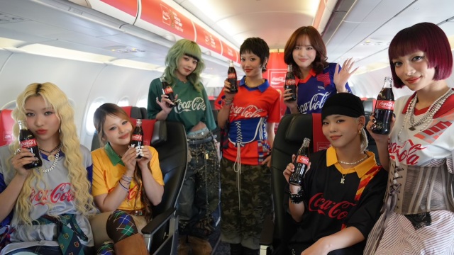 コカ・コーラ FIFA ワールドカップトロフィーツアー専用機に搭乗したXG(画像:ねとらぼ)