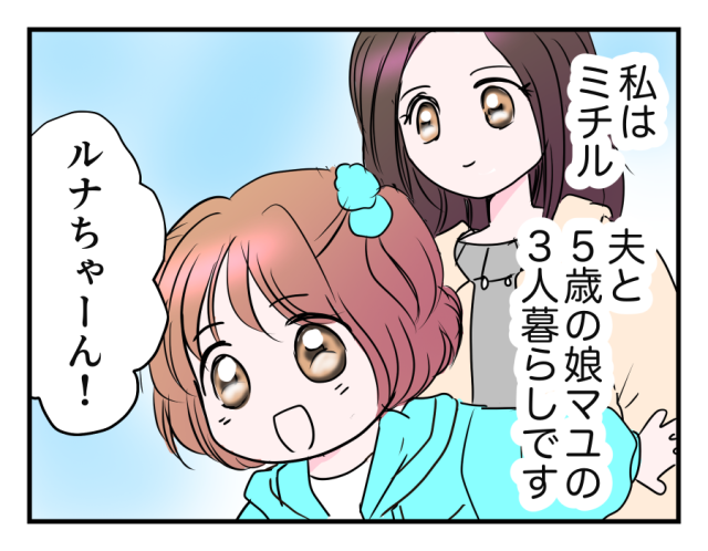 ルナちゃん一家は、年中さんの4月に引っ越してきました。まず幼稚園のクラス内でマユちゃんとルナちゃんが仲良くなり、その後、送り迎えでママ同士もよく一緒になったことから親子ともに親しい仲に。今では幼稚園から一緒に帰ったり、週末に待ち合わせたり、近所の公園で一緒に遊ぶようになったそうです。
