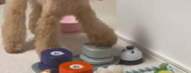 投稿したのは、ティーカッププードルの双子のきょうだい「むぎ」くんと「くるみ」ちゃん(4歳)の飼い主「むぎとくるみ(mugi_to_kurumi)」さん。動画では、会話ボタンの前にダッシュで登場したくるみちゃんが、勢いよくやり取りを始めます。