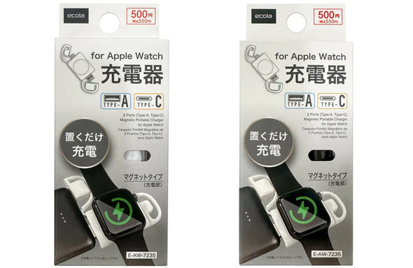 ダイソーで販売中の「Apple Watch用 充電器(マグネットタイプ、Type-A、Type-C)」を紹介する。価格は550円。